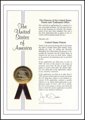 美国专利证书